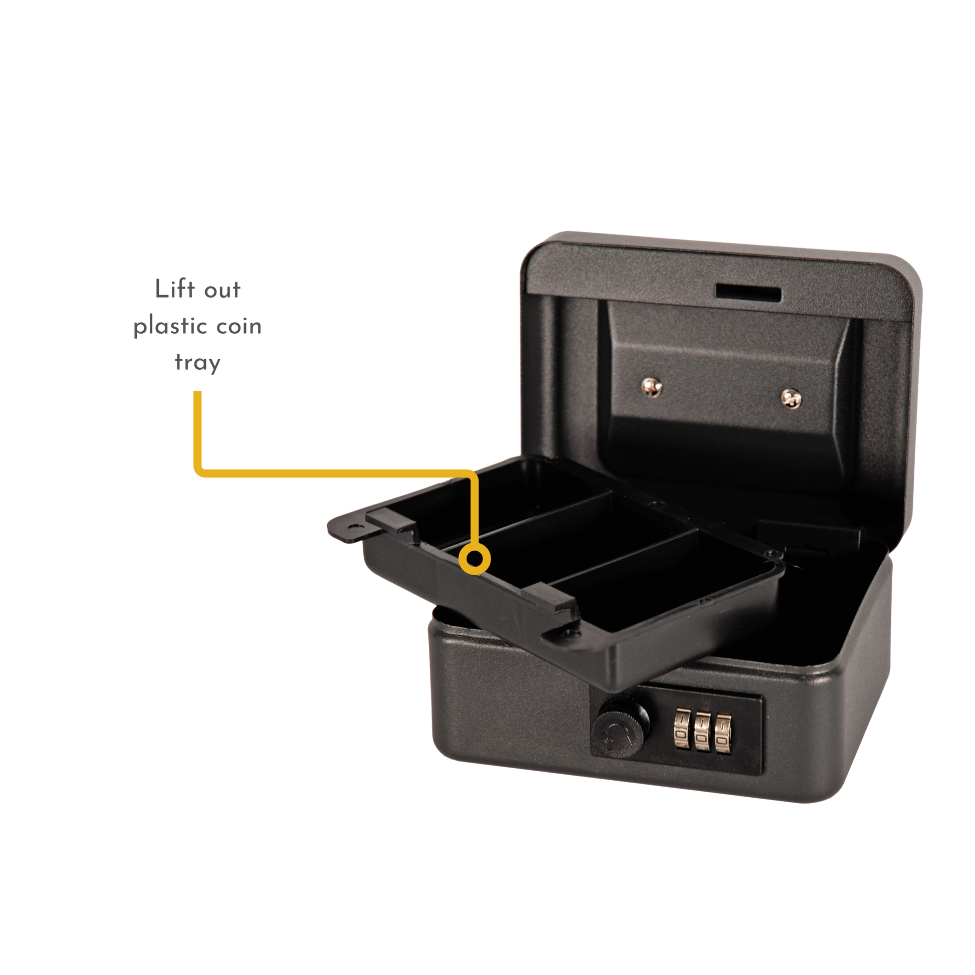 Upgrade your cash handling with our Durable 6-Inch Steel Cash Box, now equipped with a secure combination lock for enhanced security. Perfect for petty cash, this box is crafted from robust powder-coated steel and features a convenient fold-down handle for easy portability. Inside, a lift-out plastic tray simplifies money organisation, allowing quick access to coins and notes. Ideal for use at sports centres, social clubs, car boot sales, and community events, this cash box combines security with practicality, ensuring your cash is safe wherever you go.